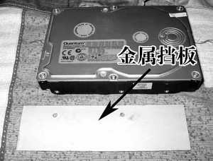 机箱废物(外包装除外)主要是软驱、光驱和扩展卡安装时取下的内外挡板,这些挡板通常被随手丢弃,真正留下派上用场的很少。《给》文中作者为固定硬盘牺牲了一个旧光驱的外壳,万一那个光驱还有救,“扒光”了可怎么用,而且此制作方法也比较复杂,该硬盘的散热也成问题(安装时作者在硬盘螺丝眼和盖板孔眼之间垫一个螺帽,一个螺帽厚度的空隙不足以给硬盘散热)。其实《给》文中要解决的主要问题是如何将3.5英寸硬盘在5英寸安装槽中固定。要达到目的其实很简单(见图1)。硬盘靠近电源接线一侧的固定没有问题,和安装光驱一样,用螺丝直接固定在机箱5英寸设备安装架上就可以了。但另一侧没有固定点,这时找一块安装光驱时从机箱中取下的挡板,仔细测量硬盘侧面安装孔之间的圆心距离,以及硬盘水平时数据线一侧的安装孔圆心离下方机箱5英寸设备安装架底板的距离,按照测量结果在挡板上做记号,打两个洞,固定上数据线一侧的螺丝即可。硬盘数据线一侧就靠金属挡板支撑在下方的底板上,个人认为效果应该比《给》文中的好。
