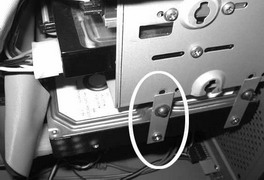 我还不满足于此。先前曾提到硬盘安装距离过近的问题,要解决此问题也得废物利用。如图2所示,安装软驱后虽然有两个硬盘安装位置,但安装后两个硬盘距离不到5mm,工作时间稍长,一摸安装架侧面都烫手!如何拉开两个硬盘的距离呢?我找来安装扩展卡时从机箱后面扯下的一两块金属挡片,将它剪成等分的两段或4段(视长度需要),每段打两个孔,4段完全一样,孔离挡板边缘不要太近。然后用4颗螺丝、螺母将它垂直固定在原硬盘安装位置的下方,用普通的硬盘固定螺丝再固定硬盘就可以了。同时该位置十分靠近机箱前下方的进气风扇,散热效果更佳。