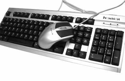 新贵这款型号为“KM-008”的“倾城之恋”键鼠套装由一款超薄键盘和一个光电鼠标组合而成。套装以银色与黑色相配,键盘底座为银色而按键为黑色,底座和按键都经过了特殊的磨砂处理,并采用了防水、防尘和静音设计。套装中的光电鼠标为银色抛光,按键同样为黑色,属于典型的3键设计,通过程序控制,还可以让鼠标的滚轮按键具有三键式鼠标的中键功能。