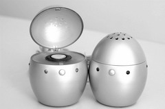 “鸡蛋”上半部“蛋壳”运用了新颖的反射板,可以突出更好的声场位置。喇叭部分运用了双悬边设计,提高了音质定位,拓宽了音域,加大了承受功率,使声音回放更加清晰和真实。“鸡蛋”腰部特别设置了一圈蓝色的LED灯,这12盏小灯会随着音乐的旋律闪烁不停。“鸡蛋”底部设置了高端的无源反射器,拓宽了有效频宽,提高了低音部分的表现能力。