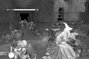 《双塔》出奇地好玩,给了“电影改编游戏绝对无好货”的言论最有力的反击。在游戏中,玩家所用的角色可以通过不断地消灭敌人来赚取经验点以升级他的武器、学习新的必杀技,而取得经验点的多寡则由玩家所能达到的连击数来决定。在《双塔》中,视角和操作的恶劣被彻底改变,作战时准确的打击感和爽快感也在不断唤醒玩家的战斗欲望。多元化的战斗任务也使游戏的流程不那么枯燥,虽然主题依然是砍、砍、砍!除此之外,《双塔》还包含了相当多的隐藏要素,包括一大堆剧照,人物采访,制作特辑,以及隐藏的游戏地点和人物。这对于延长一款游戏的生命力很有帮助。