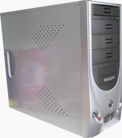 富士康的机箱电源也算是有口皆碑的,这款机箱电源套装由风云179机箱和一款FTEK P4电源组成。机箱内部的结构合理,板材选料也算扎实,电源的实际功率在200W以上,对付这样的赛扬系统已经足够了。机箱的前面板很有特色,光驱和软驱位面板采用有磨砂手感的黑色塑料,前置USB面板采用了仿汽车头样式,别有一番特色。