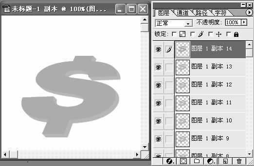 提示:按“Ctrl+Alt”组合键的同时按方向键一次就是复制一个图层,按多少次就是将选取的图形复制多少次。