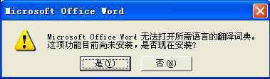 第一次使用翻译服务时系统会提示安装该项服务。例如,在菜单中选择“工具→语言→翻译”,此时会弹出一个如图1所示对话框,单击“是”按钮即可进行安装了。安装完成后,有些功能只有通过连接到Internet上才可以用,当然还可以通过设置“翻译选项”来添加或删除你认为有用的语言,以便在电脑内安装的词典不可用时,使用在线联机词典或使用在线机器翻译服务。