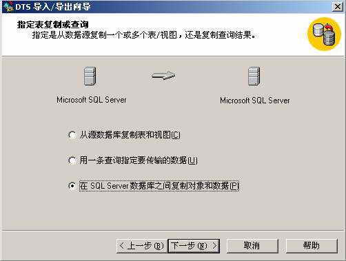 在出现的数据库复制选项中有3个选择项(图2),下面分别说明。
