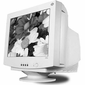 显示器可是硬件家族中的门面,真不敢想象,没有显示器的PC将会是一个什么样子。现在显示器的“面”子可是越来越大,14英寸显示器已成古董,15英寸显示器冷落街头无人问津,17英寸已成为时代主流,19英寸或是更大屏幕的显示器也在向我们走近。今天,阿萌就带大家去认识一下CRT显示器(图1)。