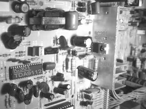 由于显示器长时间开机,散热条件不好等原因,TDA8172的故障率较高,实践表明,该集成电路块损坏后,测量⑤脚和⑥脚间的电阻为0Ω,呈完全击穿状态,而且此时电源供电端的限流电阻也往往一并被损坏。在单电源供电方式的电路中,多表现为一条水平亮线或亮带的现象,而在双电源供电方式的电路中,如果是其中一个供电电路的限流电阻被损坏,则出现与本例类似的奇怪故障。本例中由于R201只是阻值变大,没有完全断路,增加了检修的难度。有关元件在电路中的实物如图所示。
