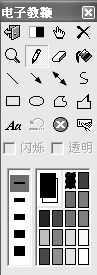 在教师端程序中点击“广播教学”按钮后,学生机立即就可接收到教师端机器的屏幕显示画面与声音。此时,教师可以播放视频课件,可以语音授课,也可以用电子教鞭辅助说明。我们着重介绍一下电子教鞭,它可以通过开始菜单程序组中的快捷方式进行启动,也可以把教师端程序最小化至系统托盘中,在屏幕上端的即指即现工具条上启动。激活电子教鞭面板后(图2),就可以用其中的工具在屏幕上输入注释信息,画出各种图示,进行局部放大等操作。