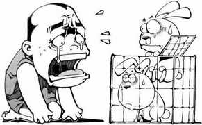 囡囡尖叫一声:“什么?打兔兔?那些兔兔多可爱啊,你竟然打它们?兔兔那么乖,又不咬人,光在那里蹦来蹦去。你不喂它们吃草,居然还打它们。你是大坏蛋!”
