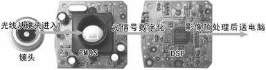 摄像头的成像过程就是将光信号数字化的过程。光线首先通过镜头,到达感光元件──可能是CCD,也可能是CMOS,两者的作用都是将光线转换为数字信号,然后数字信号被送到一个专门的处理器(DSP),进行图像增强以及视频压缩处理后再传输到电脑或者存储卡上。对于每一部件对成像的影响,我们下面逐一分析。
