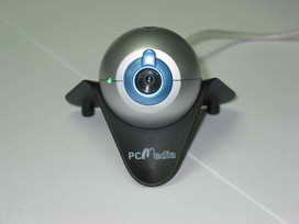 PCMedia晶视眼的感光元件为30万像素CMOS,DSP为Crescentec DC1100 。5层玻璃镜头,具有自动曝光、自动白平衡功能,焦距为3cm到无限远。测试中我们发现PCMedia晶视眼的清晰度不错,将视频放大到全屏时也看不到马赛克,但是这时可以观察到有细小的干扰条纹闪动,不过在640×480的分辨率下不易察觉。而PCMedia晶视眼的色彩也比较正常,测出的捕捉速度也让人惊讶,是这次测试中速度最快的。