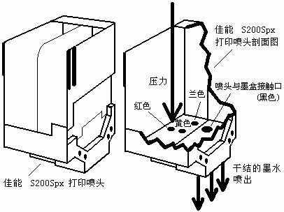笔者有一台Canon S200SPx 喷墨打印机,由于长期没有使用造成打印缺墨现象。使用打印机工具中的“清洗”和“深度清洗”都无济于事。很明显喷头已被堵住。于是,我把打印机中的墨盒取出,发现这款打印机的喷头(该打印机使用的是BCL-24墨盒)和墨盒是分离的,完全可以将喷头取出对其进行处理。