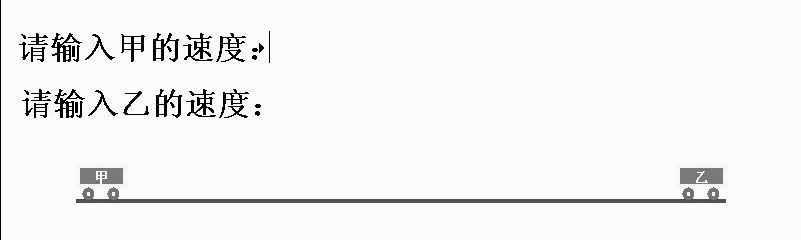 ①拖入一个显示图标到主流程线上,命名为“文本”,打开该显示图标,利用Authorware自带的文本工具输入下面两行文字:“请输入甲的速度”、“请输入乙的速度”,并设置合适的字体字号。