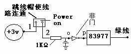 为了让大家更清楚地了解计算机的启动过程,下面结合QDI P6I 440BX/B1S/I1S主板的开机线路图(图1),简单地向大家介绍一下电脑启动的过程。当用户按下机箱上的Power开机按钮后,Power On导通。我们知道,Power On的两根插针上有跳线帽,它并不是直接连通两根插针的,而是相当于两根插针的延长线,最终接到开关按键后的弹簧片上,所以当我们触动Power开关的时候,线路得以导通(图2,“1”为机箱开关,相当于一块弹簧片,“2”为延长插针的导线,“3”为Power On插针)。Power On导通后,Power On的插针1的电压(CMOS电池提供的3V电压)被引到了插针2,在O点产生了一个高电平(图1),到达型号为14的非门前,经过非门后在P点变成了低电平,并进入标记为83977的I/O芯片,通过I/O芯片后又与主板电源插头的绿线相连,触发电源工作。电源首先向主板其他元器件输出电压,直到主板收到Power Good信号后,才向CPU供电,主板的时钟控制电路产生系统复位信号,CPU执行BIOS中的POST程序。POST程序执行一旦顺利通过,操作系统得以引导,接受用户的任务,直至关机。