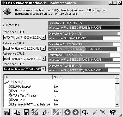 从测试成绩可以看到,在3.35GHz频率下此CPU已经全面超过P4 3.2C GHz。在Superπ的测试中,104万位成绩为51秒,也算是一个较好的成绩了。如果和P4 3.2C GHz的市场价格相比,这颗CPU显然比较超值。