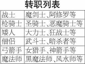 根据游戏的背景,玩家可以在三方势力中创建自己的游戏人物。而在人类、神族和魔族这三股势力中,都设定了法师、战士和弓手三个职业体系,每个职业体系都拥有自己专属的技能。职业体系还可以细分为战士、枪骑士、矮人、僧侣、弓箭手和魔法师6种,6种基本职业在完成特定的任务后,可以进行转职,而只有在转职之后,才能进入自己种族所在势力范围以外的大陆。