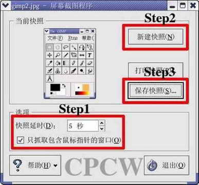 单击GNOME的Pannel面板上的照相机便会弹出保存屏幕抓图的对话框。