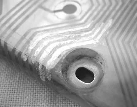 由于是塑料薄膜印刷电路,当然不能用常规的焊接方法,试了很多种方法都无效。于是拨号上网,看看有什么解决办法,忽然一条超频经验的文章让笔者眼前一亮,里面提到使用导电银漆可破解AMD CPU,对,就用导电银漆!