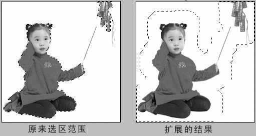 在选取的范围已经做好的状态下,执行“选择→修改→扩展”命令,在弹出的扩展设置面板中设置扩展度为“25”,此时的选区变为图3的状态。