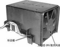 在BTX架构中,CPU散热模块采用了高散热型模块,虽然主要还是由散热片和风扇组成,但为了提高散热效果,采用了导流槽、密封圈等。导流槽包裹在CPU散热片周围,保证气流从散热鳍片之间流过,气流流经CPU之后,一部分会到达显卡或是PCI Express插槽,对显卡进行散热,另一部分被分流到内存和系统其他部件上。