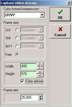 由于在FAT32的文件系统下,单个文件存在容量限制问题(Win98下为2GB,Win2000/XP下为4GB),视频文件超过限制就无法被系统识别。笔者向大家推荐一款视频采集工具──iuVCR(下载地址为http://sc-http.skycn.com/down/iuvcr_setup.exe)。它可以自定义每个采集文件的大小,然后在采集时依照所定义文件的大小自动无缝连续采集,在相邻文件间无音、视频丢失或掉帧现象;同时它还可以自定义视频采集文件的分辨率。这样我们就可以直接采集到制作SVCD所需要的特殊480×576的AVI文件了。打开iuVCR,选择“Video”,在“Crossbar”中选择“Composite in”(视频复合端子输入)”,如果用S-Video线就选择“S-Video in”;点选“Capture Format”,将“Frame size”选为“Free”,“Width”设为480,“Height”设为576,“Frame rate”设为25(图3);再回到iuVCR主界面,选择“File”,将“Max file size”设在4GB(Win98下为2GB)以下。