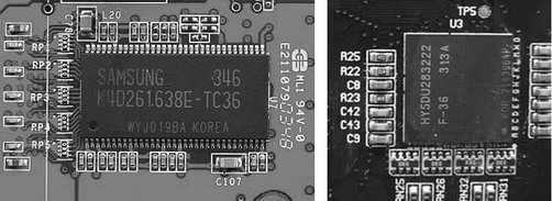这里笔者教大家一个简单的方法:一般来说,如果显存颗粒采用的是长条形的TSOP封装,那么这样的显存的位宽为16bit,4颗显存的总位宽就是64bit,8颗就是128bit;而如果是类似正方形的mBGA封装,那么其单颗显存的位宽就是32bit,组建64bit和128bit的显存位宽就分别只需要两颗或者4颗显存。不过需要注意的是,Radeon 9200SE显卡,在搭配8颗TSOP封装显存后其显存位宽仍然是64bit,这是由其核心构架决定的。另外,我们也可以通过AIDA32软件来读出显卡的显存位宽信息。
