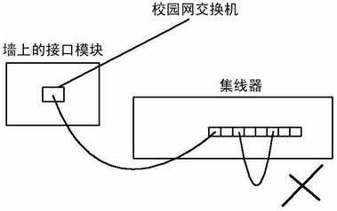 2.由于对整个网络拓扑结构的不熟悉,用户很可能在使用中不经意地将两根应连接到学校主交换机的网线连到了一台集线器或者交换机上(图2),造成了局部网络的环路。