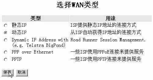 注意:在“广域网接口类型”中一定要选择“动态IP”,否则不会出现修改广域网接口的MAC地址和克隆MAC地址选项。如果你使用的是其他接入方式,如静态IP,PPPoE等,则可以在以上设置完成后,再重新进入设置界面进行广域网类型的修改。