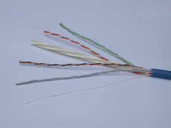 为了降低信号的干扰,双绞线电缆中的每一线对都以逆时针方向相互绞合(也称扭绕)而成,同一电缆中的不同线对具有不同的绞合度。除线对的两条绝缘铜导线要按要求进行绞合外,电缆中的线对之间也要按逆时针方向进行绞合。
