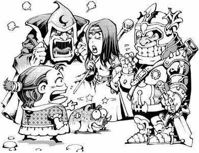 骑士挥剑凶狠地砍向囡囡,牧师也拿着小锤冲了上去。但他们的攻势比起怪兽山上的怪猴子喽啰差远了,囡囡自然不放在眼里。她随手放了几个范围魔法,就把三人打倒在地上,“哼哧”了半天还爬不起来。