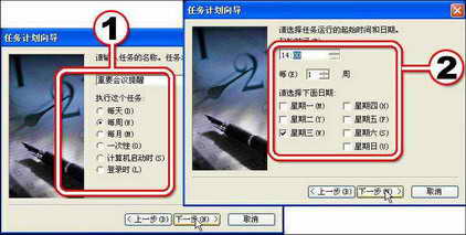 (2)显示“任务计划向导”对话框并单击“下一步”按钮。