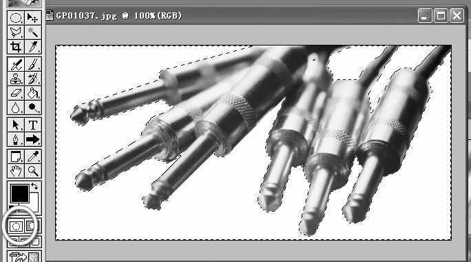 3. 在工具面板中点 “以标准模式编辑”按钮,就可以看到选取部分了(图4),只不过现在选取的是部分是背景,你现在可以直接将背景填充为白色,然后取消选区,现在你发现有些直线部分选取得有些粗糙,这好办,用直线选取工具再修整一下就OK了。