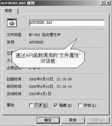 运行后将调用系统的“文件属性”对话框(如图1),这个功能可以增加到文件管理型的程序中。