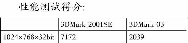 我的这块显卡最高可以超至430MHz/560MHz,与标准的250MHz/400MHz相比有了很大的提高。超频后进行了简单性能测试,得分为: