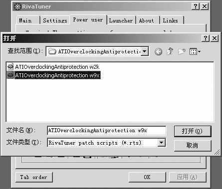2.运行RivaTuner,选择在“Power user”控制栏,点击左下第二个按钮准备打开ATi显卡超频破解文件(图1)。该文件一般在RivaTuner程序安装目录下的PatchScripts\ATI\ATIOverclockingAntiprotection\目录中。