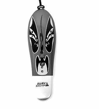 第三步制作图案,因为笔者喜欢的就是京剧脸谱,所以在网上搜索了一些京剧脸谱的图案,不过选择的时候要根据自己闪存的外形来决定,当然如果能自己设计一个那更好。笔者将一幅京剧脸谱图案根据闪存的外形作了一些调整,大小跟闪存一样,然后用打印机将图案打出来。接着用小刀将黑色和红色的位置挖掉(笔者选择的脸谱图案较简单,只有黑、白、红三色),再将图案固定在闪存上,切记要固定好。最后用两种喷漆分别将红色和黑色的位置喷上颜色,晾干即可。