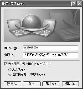 M牛提示:为了限制使用此计算机的其他人使用该ADSL拨号连接,你可以在拨号连接窗口中,将“为下面用户保存用户名和密码”设置为“只是我”。