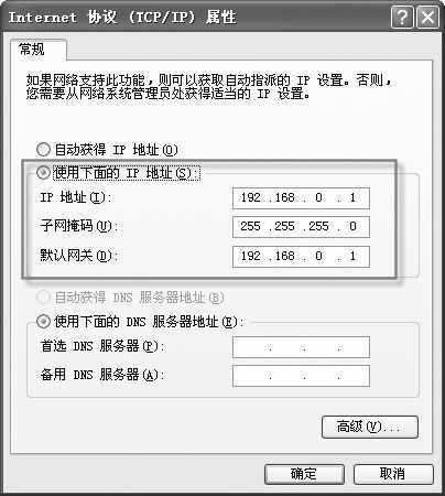 首先,打开“网络连接”窗口,右键单击“本地连接”,选择“属性”命令;接着,在打开的属性窗口中,选择“常规”选项卡,在“此连接使用下列项目”中选择“Internet协议(TCP/IP)”,单击“属性”按钮;然后在打开的窗口中,选择“使用下面的IP地址”,在IP地址中输入固定的IP地址,比如192.168.0.1(图4),另外有必要还可以输入默认网关、DNS服务器,子网掩码会自动添加。最后,连续两次单击“确定”按钮即可。