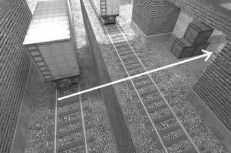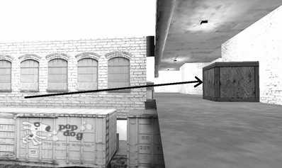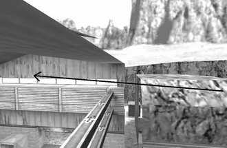 2.de_train六号车道口是T经常利用人数优势来强攻的位置。如图3、4所示,CT可以绕到五号车道,然后在列车尾部一带朝着墙对面射击,只要距离掌握合适,子弹正好都打在六号车道正对绿墙的那条通道上,而那正是T进攻时人员最集中的区域。