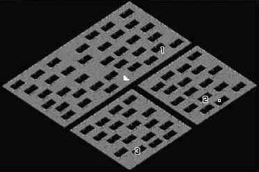 进入诺玛遗址4层,打开地图可以看见诺玛遗址4层分成了三个部分,北边是一整块,中间分布了若干个黑色方块,每个方块上还有两扇门,通过它们可以传送到地图的其他地方;西南边和东南边各分成一块,地形分布和北边一样,也是分布着若干个黑色方块。