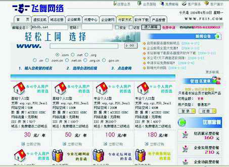 记者首先登录了深圳市飞舞网络科技有限公司的网站(http://www.fei5.com),发现该公司除了提供虚拟主机的服务,还有域名注册、企业邮局、企业建网等服务,在其页面上详细地罗列着不同档次的服务收费标准。同时网站上还标注着和读者何虎提供的完全一样的联系方式。