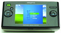 iPod是当前最知名的MP3播放器品牌,虽然售价不菲,但备受市场追捧。凭借iPod,苹果公司在消费电子市场获得了巨大成功,并赚取了大量利润,这引起了包括微软在内的诸多IT厂商的注意。在去年的CES 2003上,微软公司抛出了名为“Media2Go”的产品计划。这种运行在Windows CE.Net衍生操作系统上并内置硬盘的PMP设备,不仅可以播放数字音乐,还可以通过本身的液晶显示屏播放WMV、MPEG等视频文件,强大的功能引起了与会者的关注。然而,“Media2Go”当时尚不成熟,且支持厂商较少,影响面较为有限。而在今年的CES 2004上,“Media2Go”已经进化为“Portable Media Center(以下简称PMC)”,并被微软纳入Windows Mobile品牌之下进行市场宣传与营销。很明显,微软希望功能比iPod更加丰富的PMC能够像iPod一样风靡全球。在微软的策动下,三星、iRiver、创新、优派、ACORP、大众等知名厂商已经推出了基于PMC平台的产品。创新公司基于微软Portable Media Center平台的产品(图1),采用了3.5英寸液晶屏,内建20GB硬盘,支持MP3、WMA、WMV以及JPEG等格式的多媒体文件。