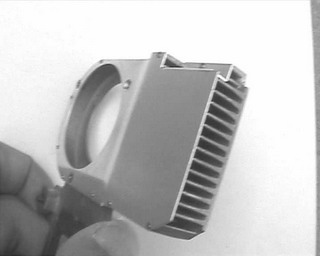 仔细观察散热器,发现它包括散热风扇、散热导管、散热片等。散热器的工作原理是:先通过散热导管将CPU产生的热量传递到散热片上,然后再由散热风扇把热量排出到笔记本电脑外部。整个循环过程需要散热导管、散热通道、散热风扇三方面充分配合,才能将本本内部的热量排到外界。散热不好肯定是其中一个或多个环节出了故障,首先查看一下散热导管。散热导管是密封的,一般不会出现问题。散热风扇刚才已经检测过了,也没有问题。看来问题肯定是出在散热片上(见图)。