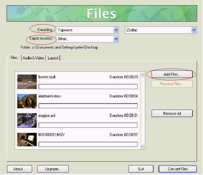 1.在PC的Windows系统中安装Kinoma Producer并运行它,在其主界面的“File”页面中(图1),点击右边的“ADD Files”按钮,加入MPG、AVI影片文件。其中,AVI影片必须是DIVX编码格式。目前暂不支持WMV的视频文件格式。