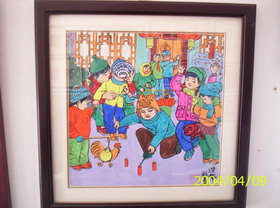 图中所示是笔者在窑洞内拍摄的一幅镶嵌在玻璃镜框内的年画,曝光补偿值为0.5,未开闪光灯。另外虽然没有光学变焦,但用1.5~2倍的数码变焦并没有对相片质量产生太大影响,在3倍数码变焦时的相片质量就有明显下降了。而最后冲印出的5寸照片画质和同事那款3000多元的DC相比更是相差无几,嘿嘿!