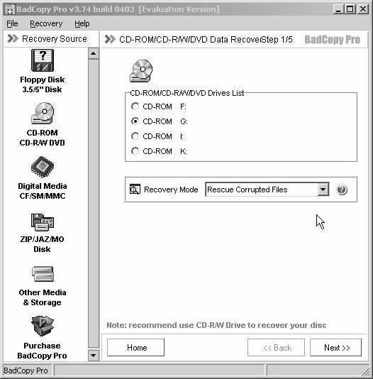 CD、CD-RW、CD-R、DVD光盘是我们平时最常见、常用的移动存储介质,但如果我们因为保存不当或因为潮湿、划伤造成光盘无法被光驱读取,你可以试试使用BadCopy Pro。