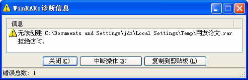 一日,一位同事通过E-mail给笔者发来一份压缩的Word文档,让我帮他修改一下。用Foxmail接收下来后,本着省事的原则,直接双击附件,打开“附件”对话框,点击“打开”按钮,打开了压缩包,对文档进行了修改保存,结果却给出了“诊断信息”(图1)!关闭该对话框后,再次打开文档,发现修改没有成功。