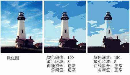 颜色阈值:颜色阈值的设置决定了转换后矢量图所得到的颜色,阈值越小,转换成矢量图后所得到的颜色就越多,加大阈值,转换出来的矢量图颜色就会减少,这个值可以根据需要从0~500之间选择。