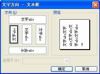 Step3:在文本框中右击鼠标,在随后弹出的快捷菜单中,选“文件方向”选项,打开“文字方向”对话框(如图2),选中“左转90度”的文字方向选项,确定退出。仿照上述操作,将文本框边框线设置为“无线条颜色”格式,然后调整好文本框的大小和位置。