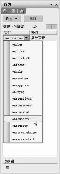 小知识:网页制作中的“行为”是指一些JavaScript脚本选项。在网页浏览过程中,利用“行为”可以加强访问者与网页元素的互动性。